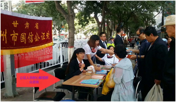 2018年9月8日,國(guó)信公證處黨支部書記朱云慧同志帶頭參加主題當(dāng)日活動(dòng),組織支部部分黨員、入黨積極分子、公證員到皋蘭路榆中街市場(chǎng)以發(fā)放宣傳冊(cè)、宣傳單、現(xiàn)場(chǎng)咨詢等方式進(jìn)行公證法律知識(shí)和服務(wù)宣傳。